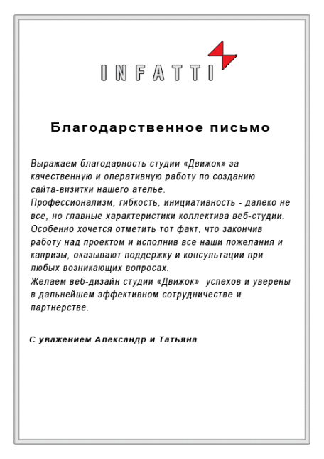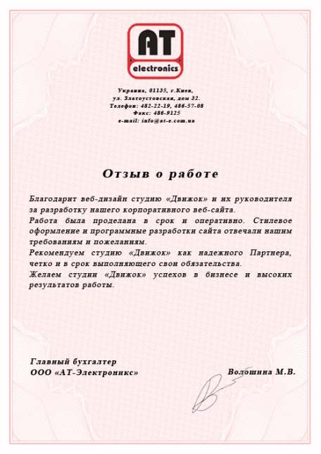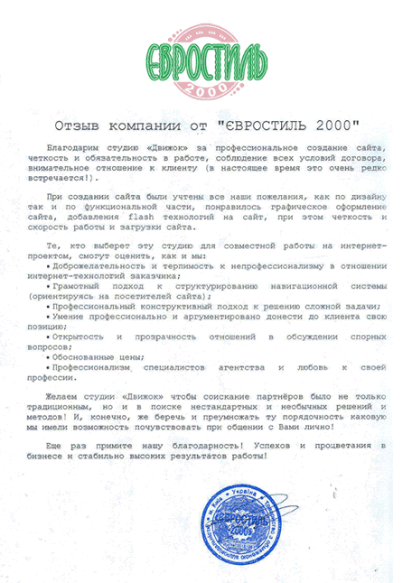 Одним из признаков нашего профессионализма являются повторные обращения в нашу компанию и лестные рекомендации о нас друзьям и коллегам.